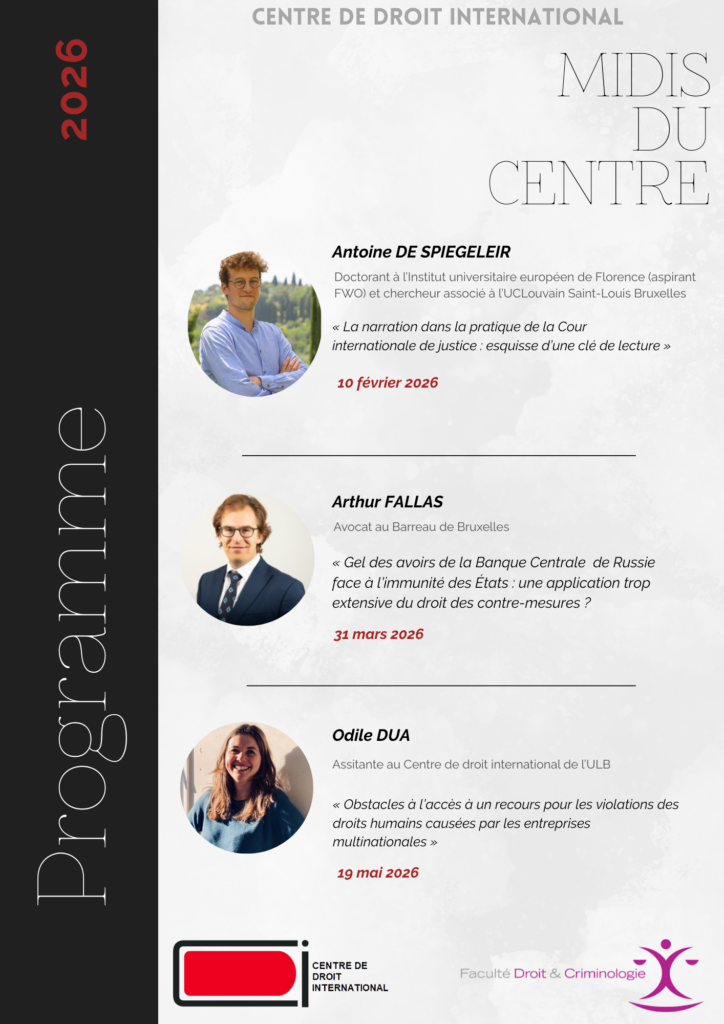 Un colloque sur l’actualité du crime de génocide co-organisé par le Centre de droit international et le Centre de recherches en droit pénal prendra place le mercredi 13 mai 2026 . La journée d’étude a pour objet de faire le point sur les débats juridiques qui…