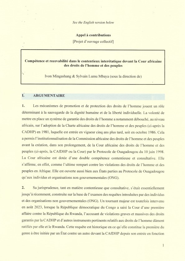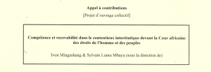Sous la direction d’Ivon Mingashang, membre associé du Centre de droit international et de Sylvain Lumu Mbaya, un appel à contributions est lancé sur le thème de la compétence et de la recevabilité dans le contentieux interétatique devant la Cour africaine des droits de l’homme et des peuples.